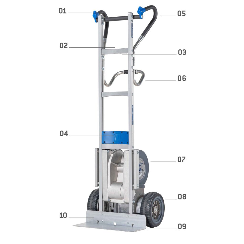 The LiftKar HD Pro transforms the dangerous task of moving heavy loads on stairs into a fast, secure, and ergonomic process. Designed for transport, retail, and industrial sectors, this powerful tool eliminates back and joint strain while significantly reducing the risk of accidents. Its perfectly balanced climbing unit features two speed settings and versatile step modes, while the innovative step-edge braking system ensures maximum safety during every ascent and descent.