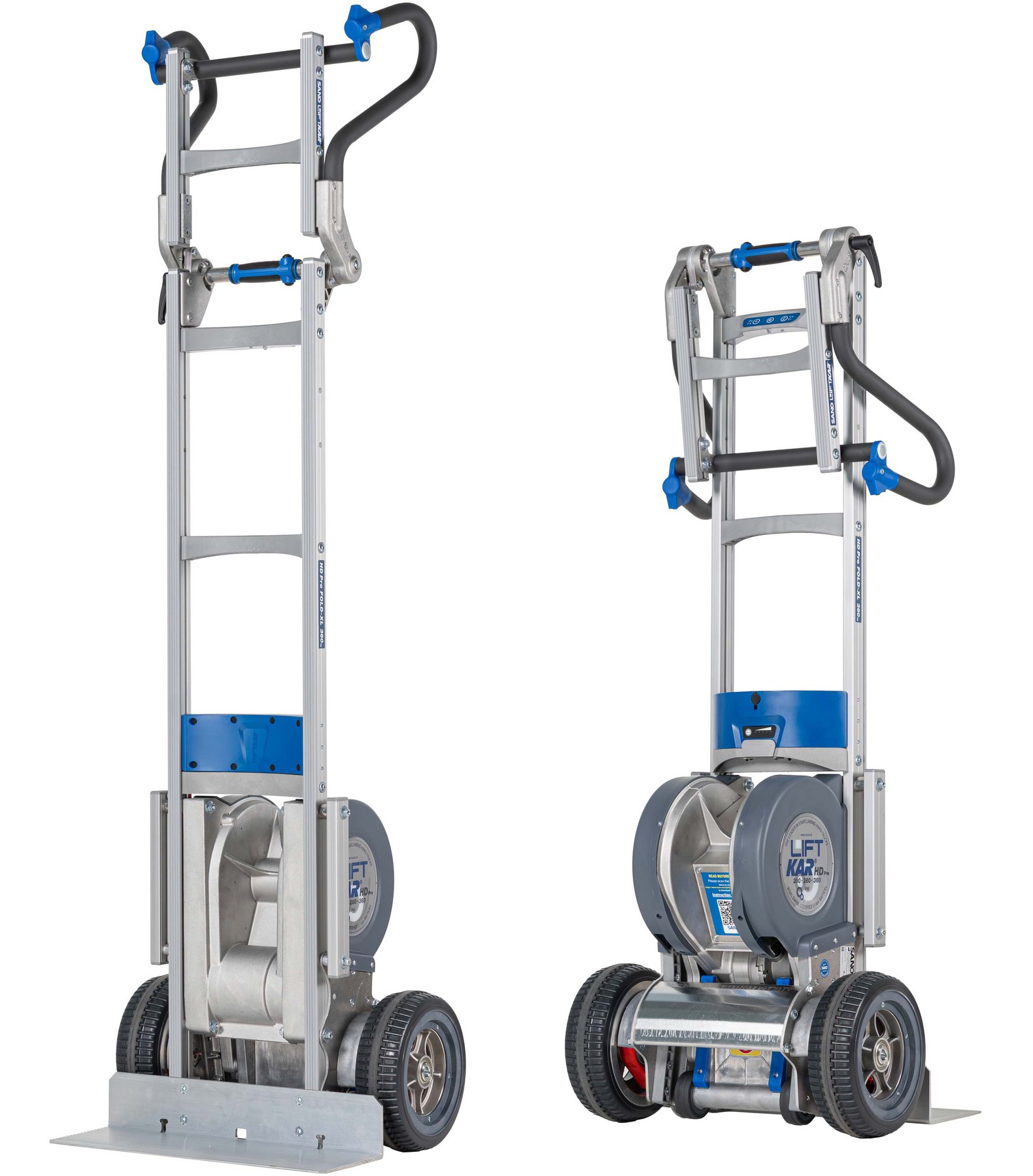 The LiftKar HD Pro FOLD-XL model extends the capabilities of the standard device with additional length, allowing for the transportation of even the largest and most cumbersome loads that would typically challenge a standard workforce. The LiftKar HD Pro FOLD-XL masters such tasks with ease, offering extra stability and safety during transport over difficult terrain and especially over steep stairs. The LiftKar HD Pro FOLD-XL is equipped with the latest Li-Ion lithium battery technology, enabling a range of up to 700 steps* per battery charge. Whether for commercial purposes or demanding industrial applications, the LiftKar HD Pro FOLD-XL ensures you achieve your transport goals efficiently and without physical strain.