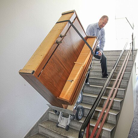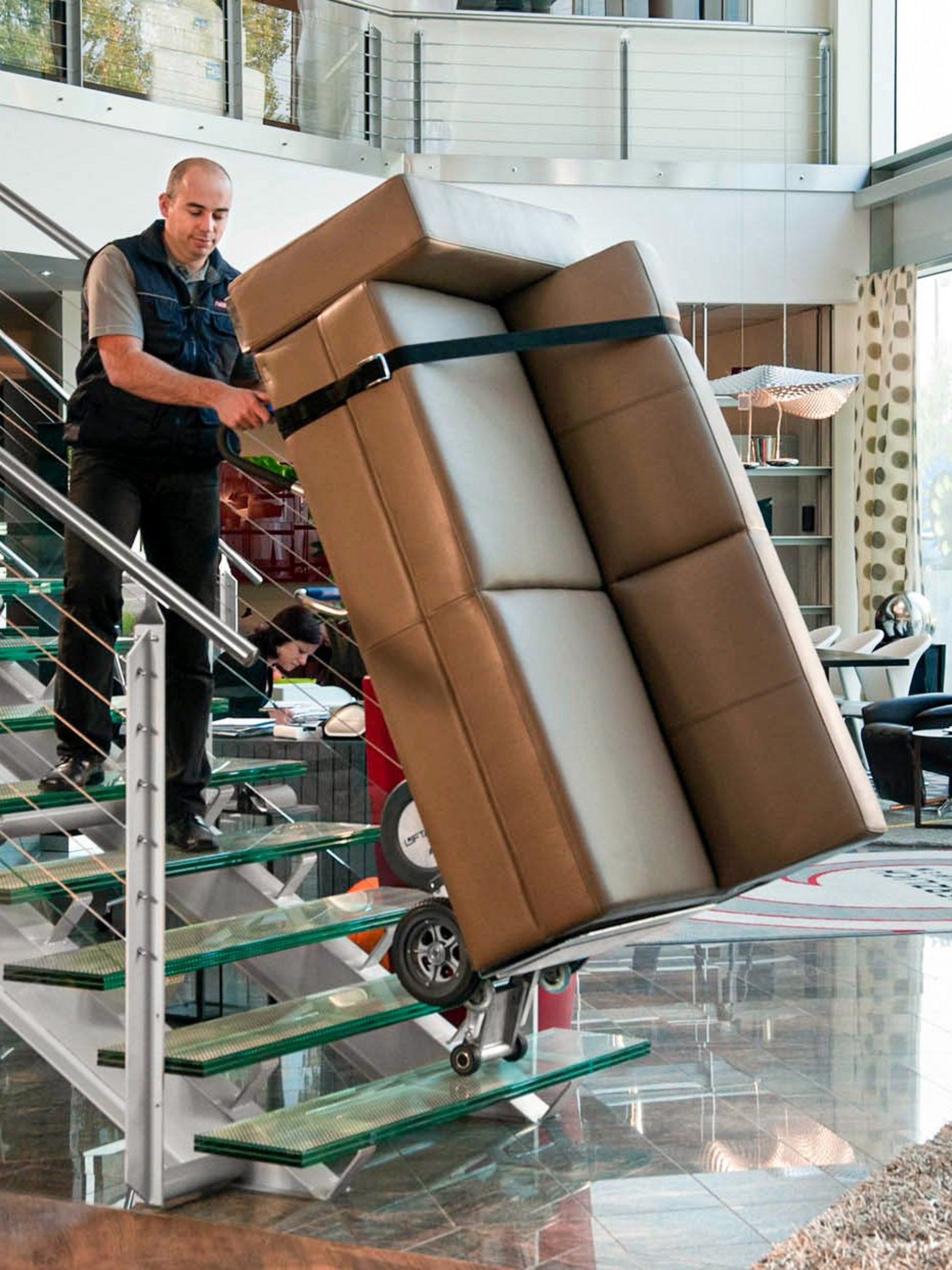 Our solutions for the wood and furniture industry simplify product deliveries, even up and down stairs and over long distances. With the power of our electric stairclimbers, you can safely transport loads from 242 lbs to 794 lbs, saving time, reducing labor, and minimizing the need for additional personnel. Heavy furniture like wall units, sofas, coffee tables, and solid wood pieces can be moved effortlessly and carried up stairs, boosting efficiency while protecting your most valuable asset: healthy employees. Experience the reliability of our equipment and streamline your entire delivery process.