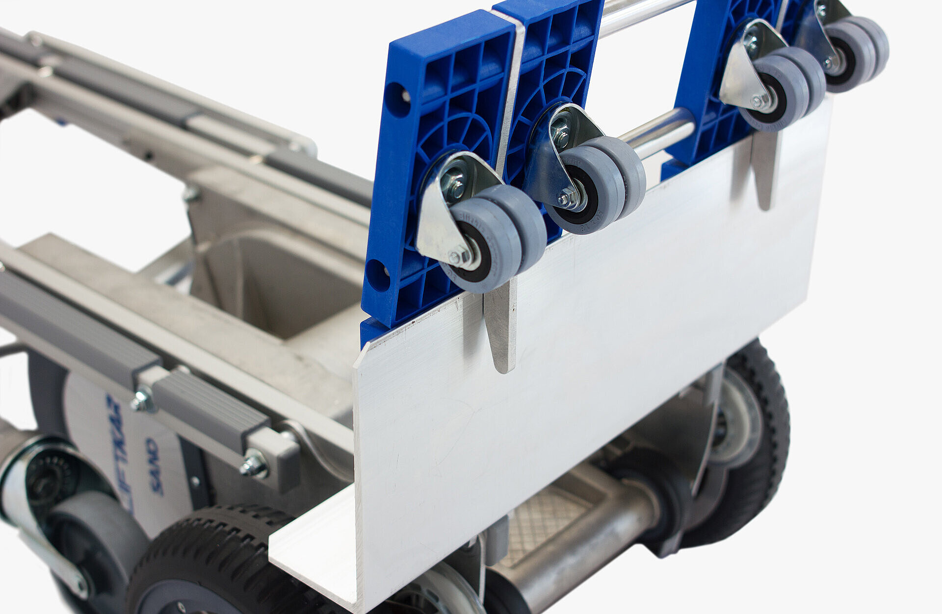 An add-on toe plate with four double castors is also available to make it even easier: now the LiftKar HD can be moved effortlessly on the level in an upright position without tipping over.