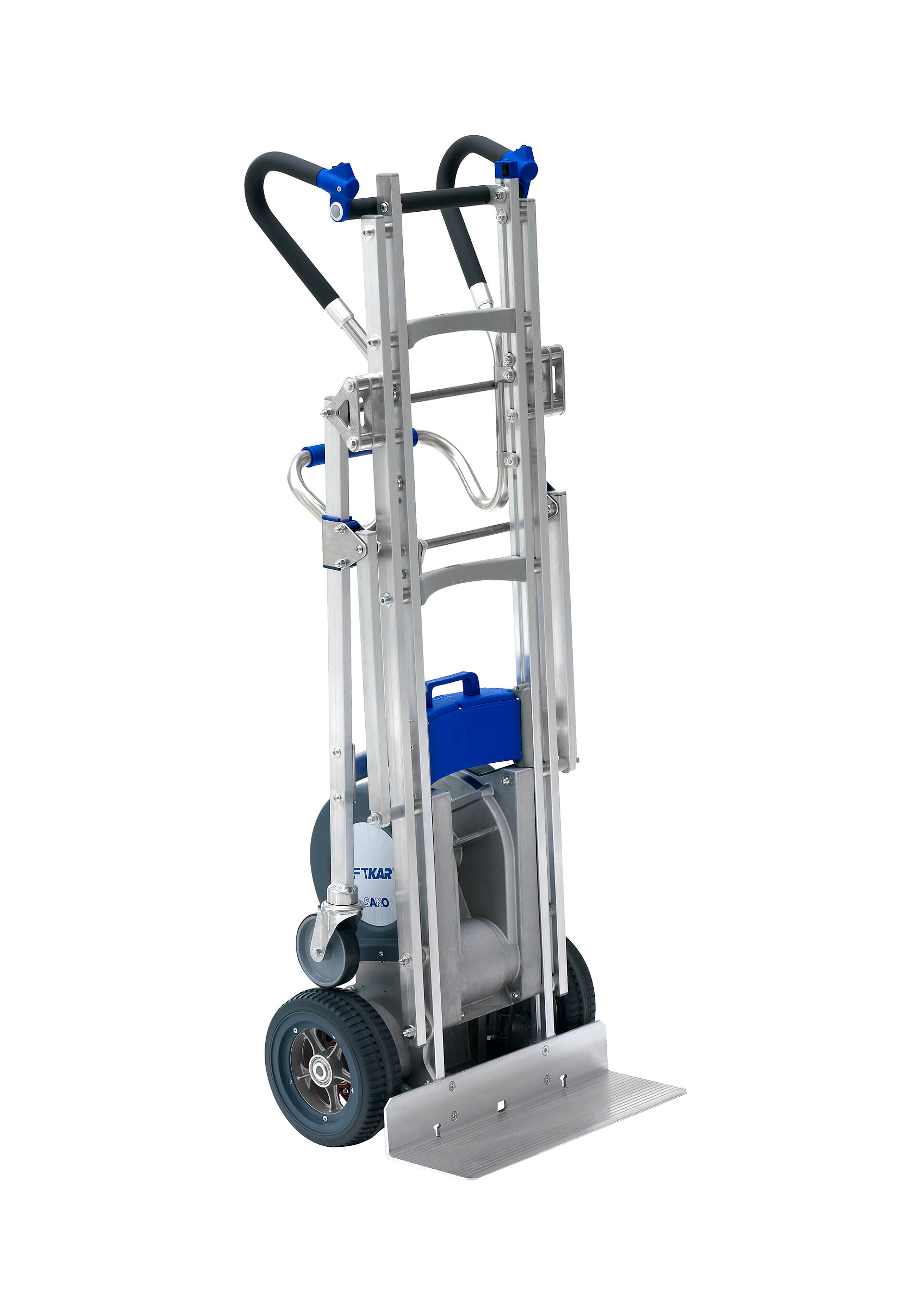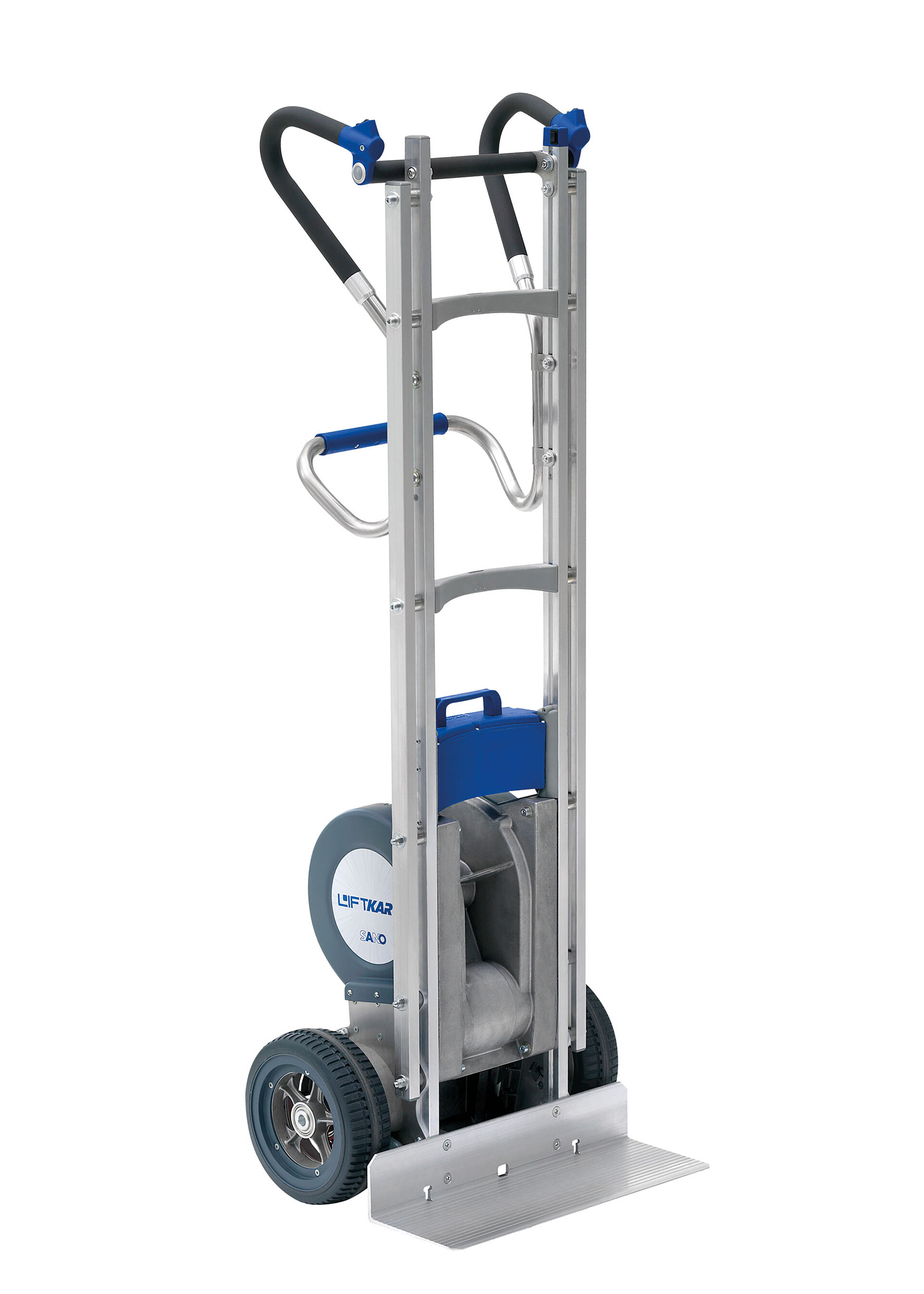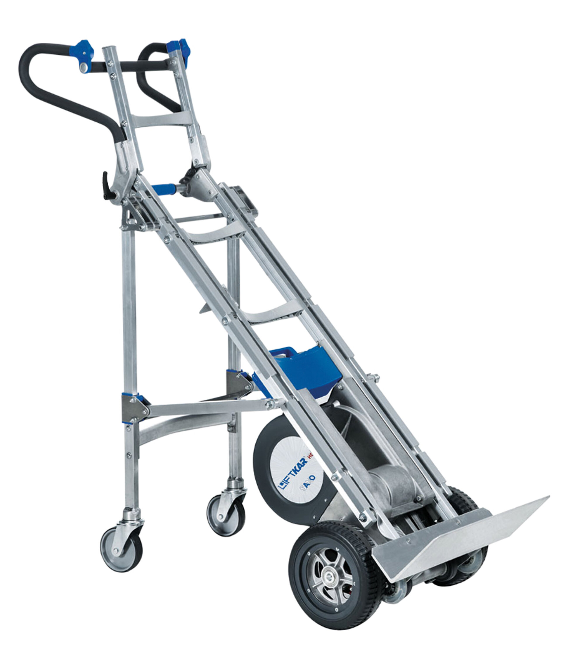Universally Applicable The LiftKar HD Pro is as easy to use as a traditioanl handtruck. With the battery-powered climbing mechanism, the stairs can be climbed quickly and safely. The LiftKar HD Pro pushes itself up the stairs efficiently and precisely to the next step. Down steps, the motor acts like an eddy-current brake, enabling the load to descend at a safe smooth speed, with maximum controllability. The LiftKar HD Pro, has edge of step brake wheels which are engaged automatically when the machine is turned on. The HD Pro ensures that the user's backs are protected, and the risk of accidents is minimized.
