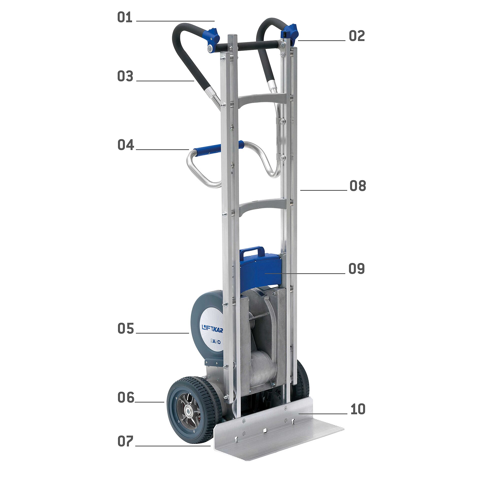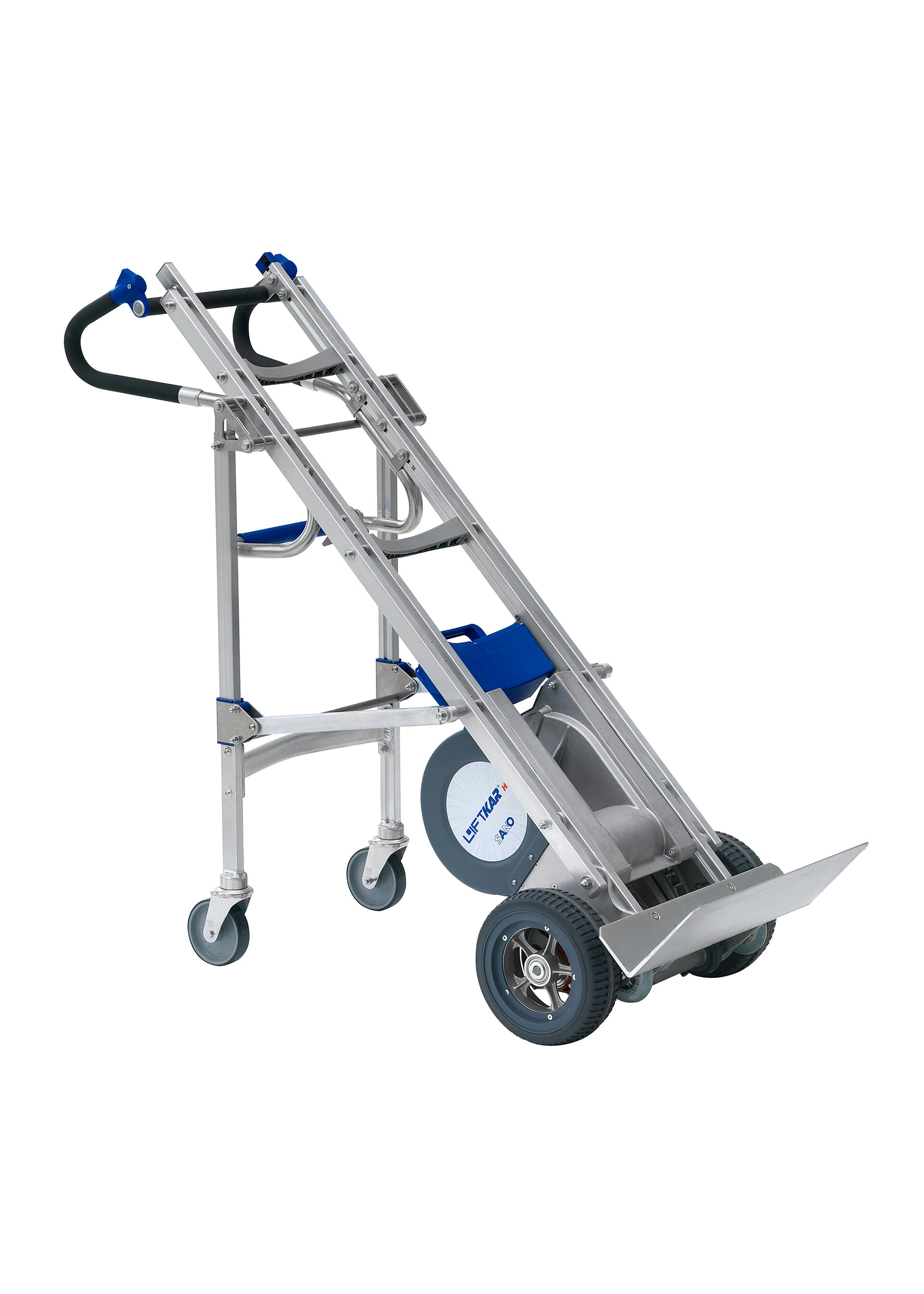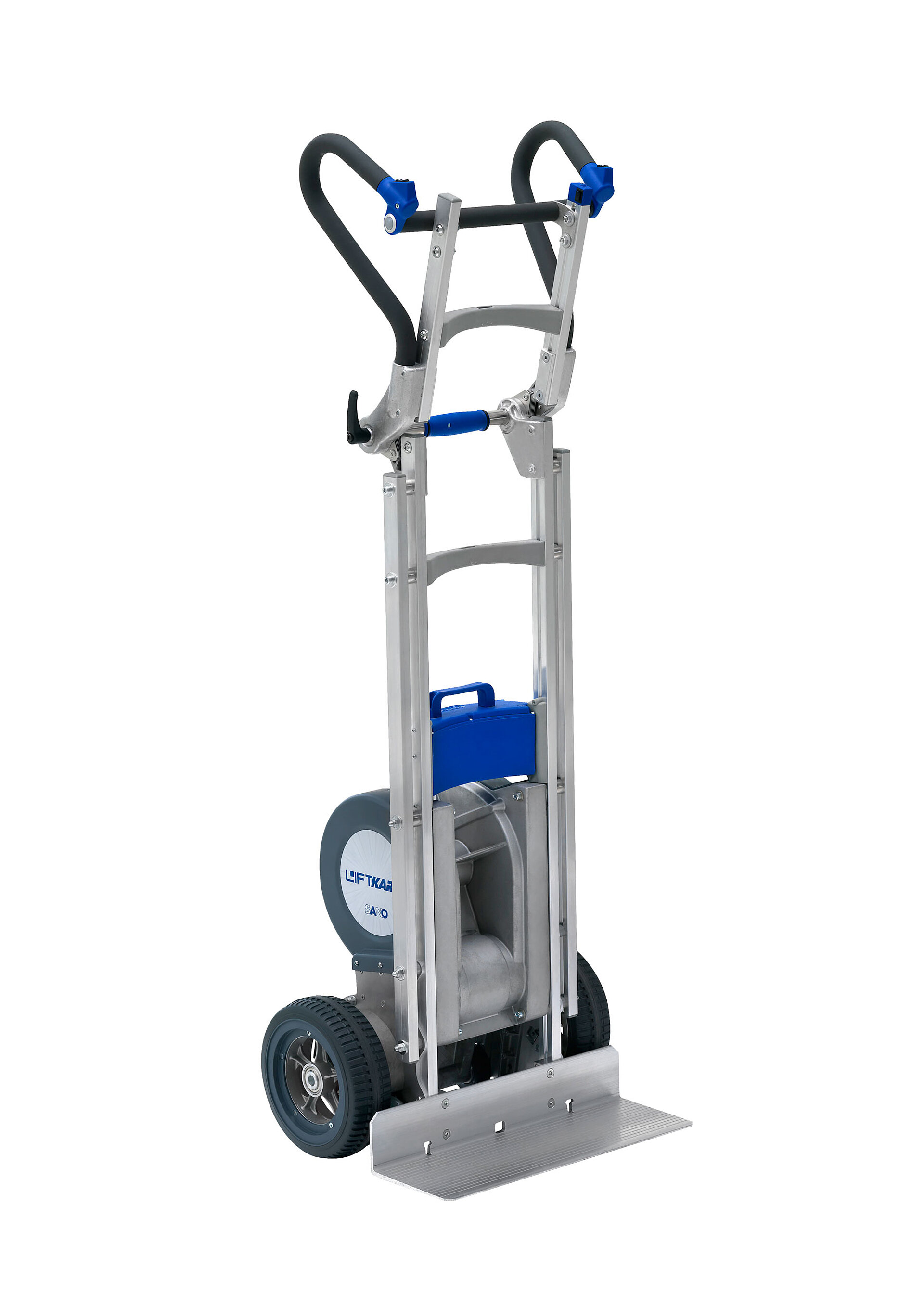 Universally Applicable The LiftKar HD Pro is as easy to use as a traditioanl handtruck. With the battery-powered climbing mechanism, the stairs can be climbed quickly and safely. The LiftKar HD Pro pushes itself up the stairs efficiently and precisely to the next step. Down steps, the motor acts like an eddy-current brake, enabling the load to descend at a safe smooth speed, with maximum controllability. The LiftKar HD Pro, has edge of step brake wheels which are engaged automatically when the machine is turned on. The HD Pro ensures that the user's backs are protected, and the risk of accidents is minimized.