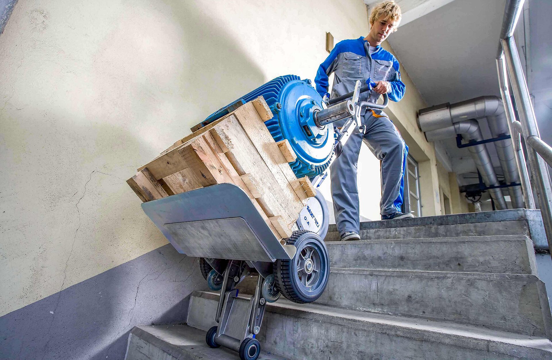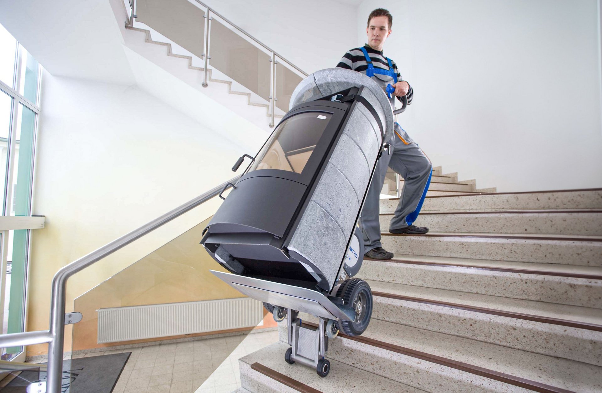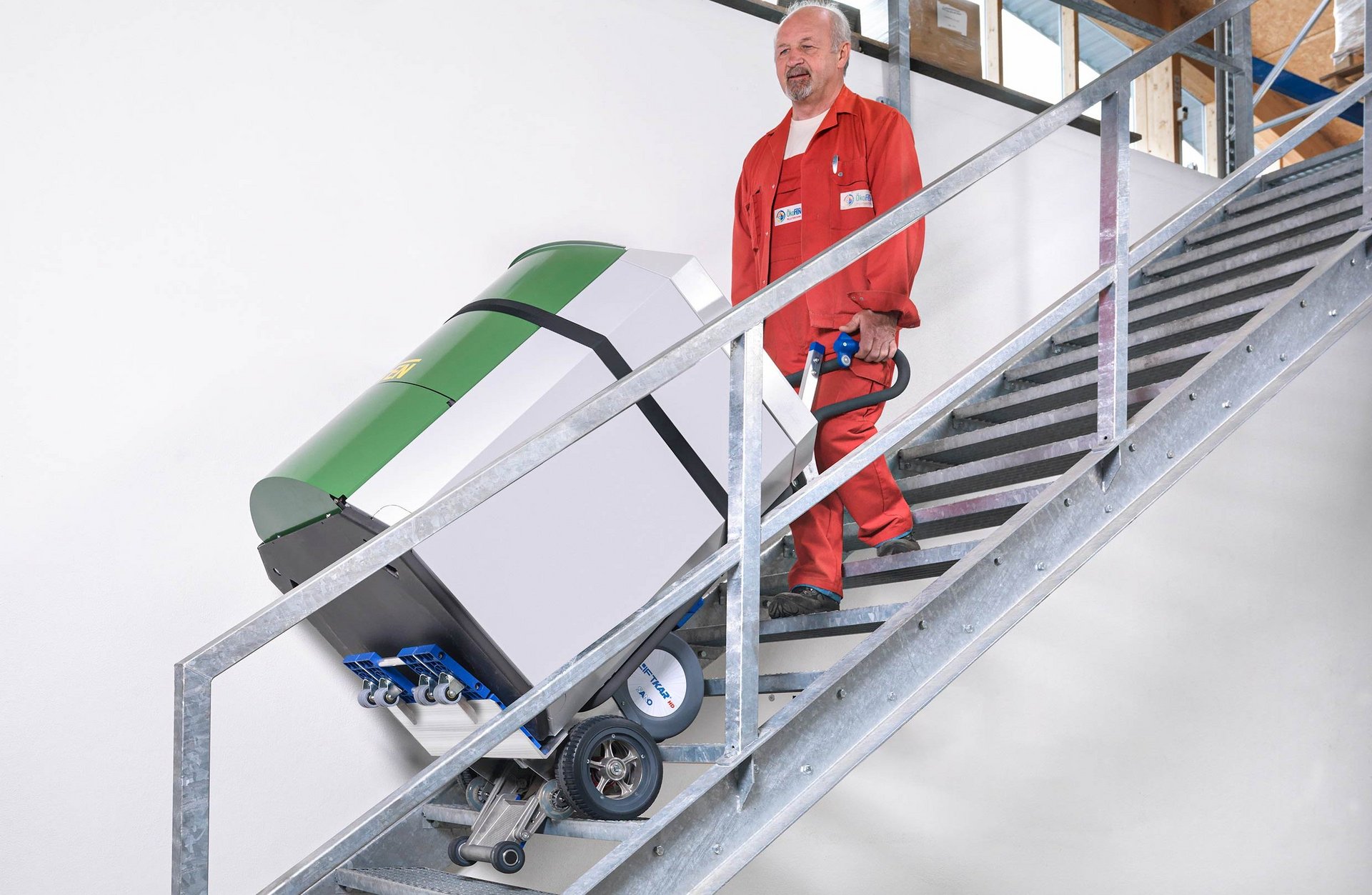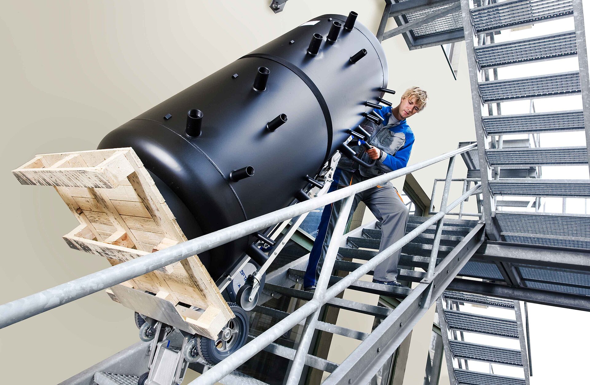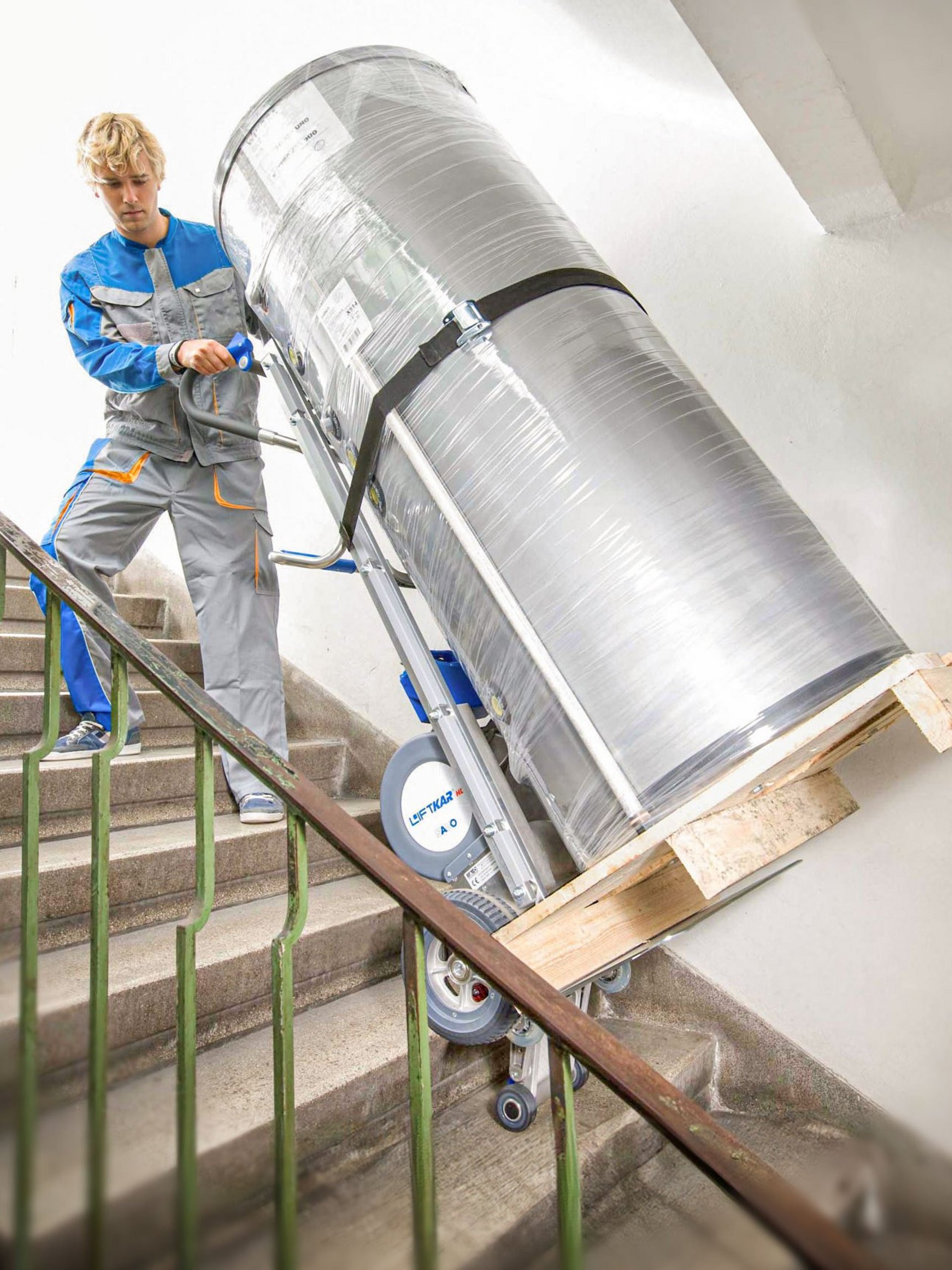 Whether electrical enclosures, drink dispensers, gaming machines, large boilers, solar heating vessels, heavy rolls of linoleum or stacks of crates, the LiftKar HD Universal has been specially designed to transport high and heavy loads over every kind of stairs.