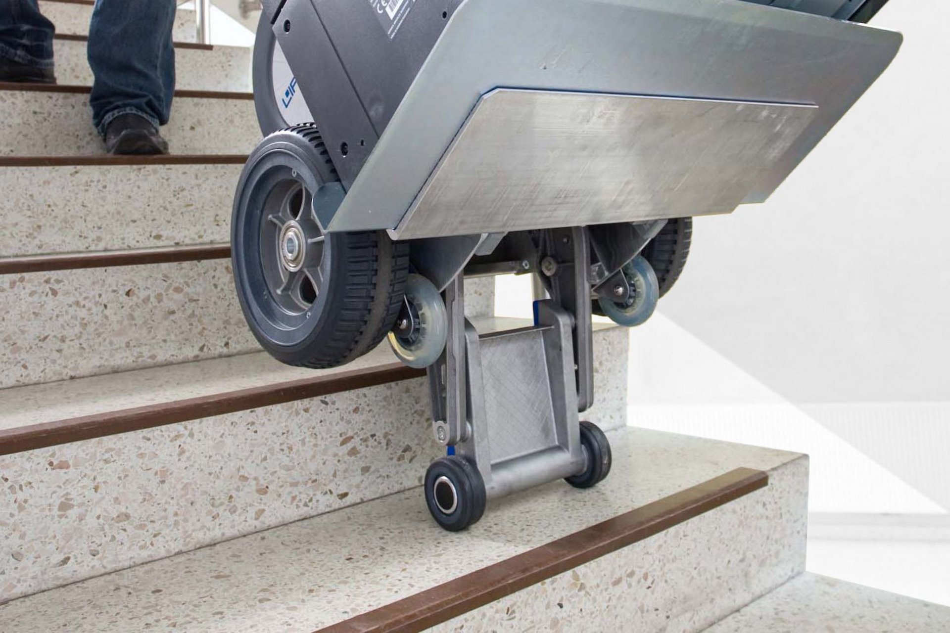 - perfectly balanced climbing unit for safe operation on steps and stairs