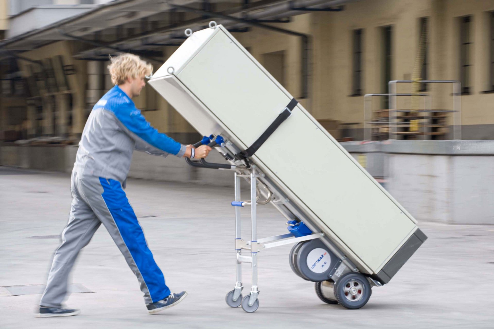 Copiers, cast-iron stoves, boilers, linen trucks, batteries for telephone systems, lift motors etc. all have one thing in common: they are compact and heavy. - If the object has a very low center of gravity then you really need to crouch down to hold your balance. And that really puts the strain on your back. - Unless you transport these loads using the LiftKar HD Fold.