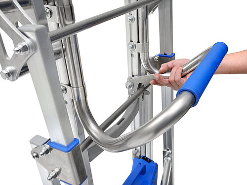 With the LiftKar HD Fold you can set the inclination of the handles to the exact center of gravity of the goods being transported. This means that you can maintain an upright posture while maneuvering stairclimbers carrying even the heaviest loads up and down stairs. It's so easy: just release the clamping lever on the handlebar frame to set the ideal position of the hand grips in seconds. Friction plates ensure they remain securely in place when the clamping lever is tightened. The name says it all: on the LiftKar HD Fold the handlebar unit can be folded away so that the stairclimber can be stowed on even the smallest of transport vehicles.