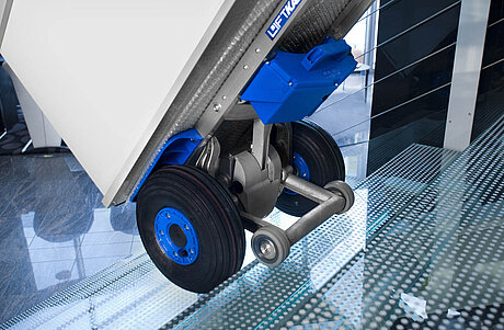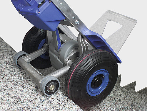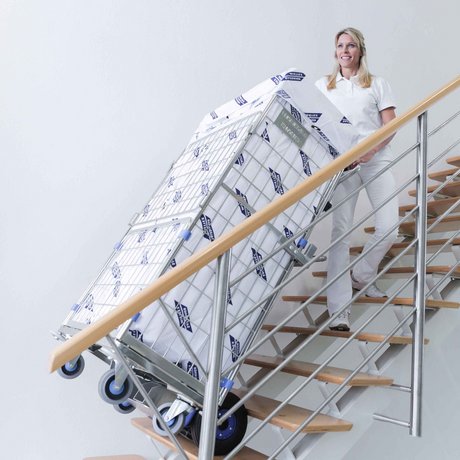 Light and quick, Universally applicable The NEO LiftKar SAL is as easy to use as a hand truck. With the battery-powered climbing mechanism, the stairs can be climbed quickly and safely. The NEO LiftKar SAL pulls itself up the stairs efficiently and precisely to the next step. Down steps, the motor acts like an eddy-current brake. Enabling the load to descend at a safe smooth speed; without a press of a button! Your back is protected, and the risk of accidents is minimized.