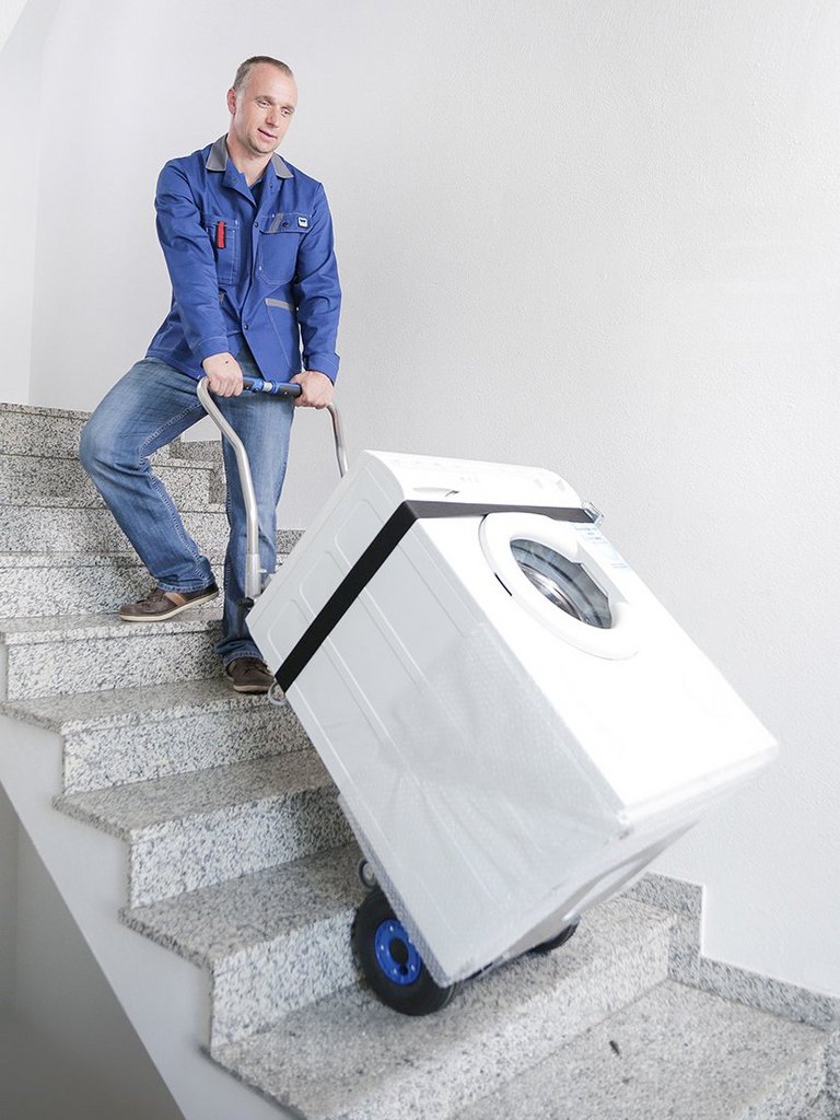 The LiftKar SAL FOLD is ideal for transporting appliances up and down stairs. The patented folding mechanism allows the handlebar to be optimally adjusted to the load. Despite its low weight of 44 lbs, the LiftKar SAL FOLD can also handle heavy loads.