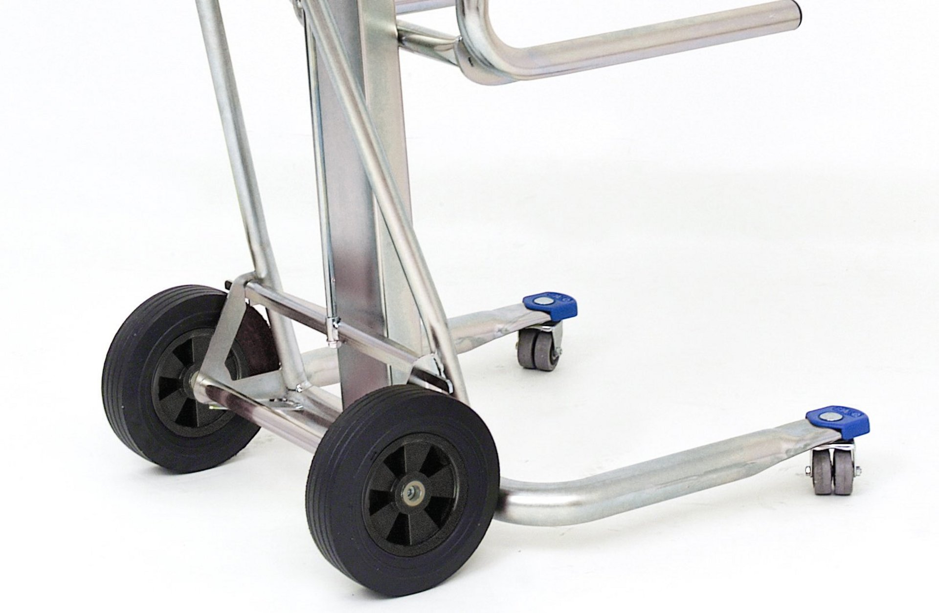 - 8-in diameter rear wheels enable loads to be transported across uneven floors and small steps