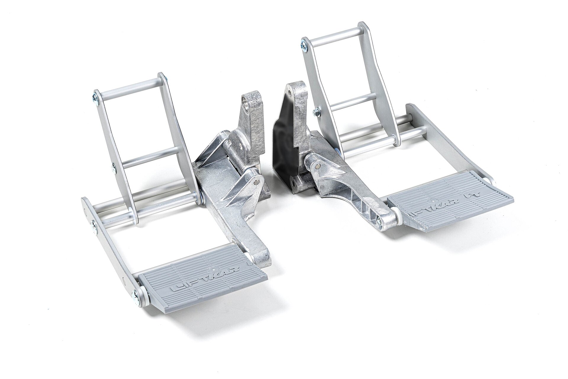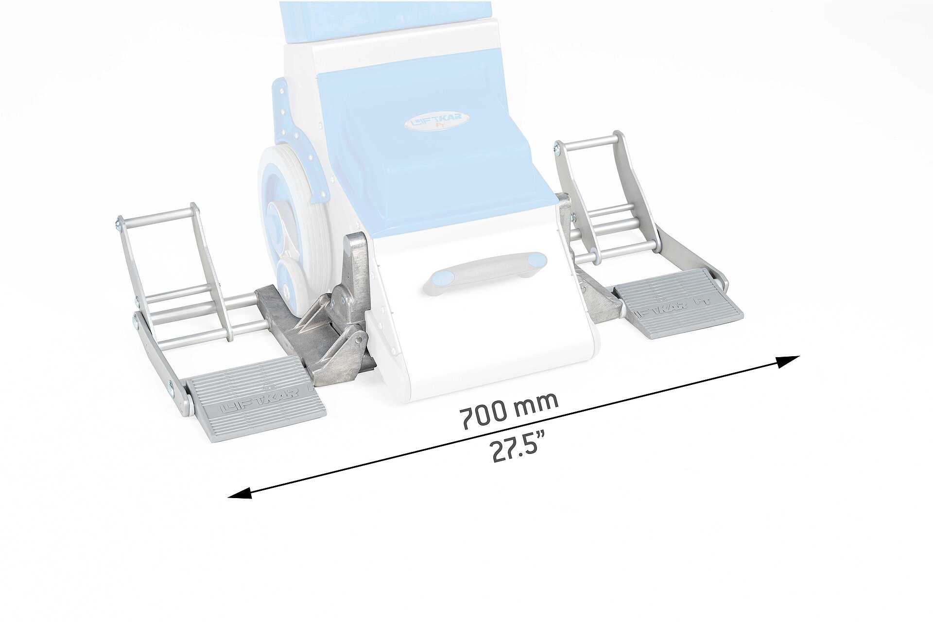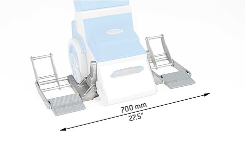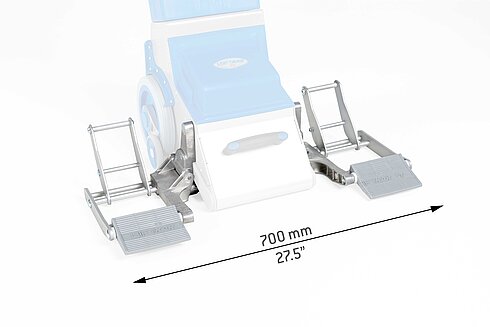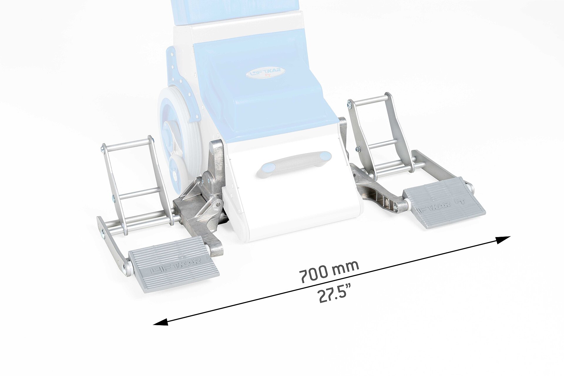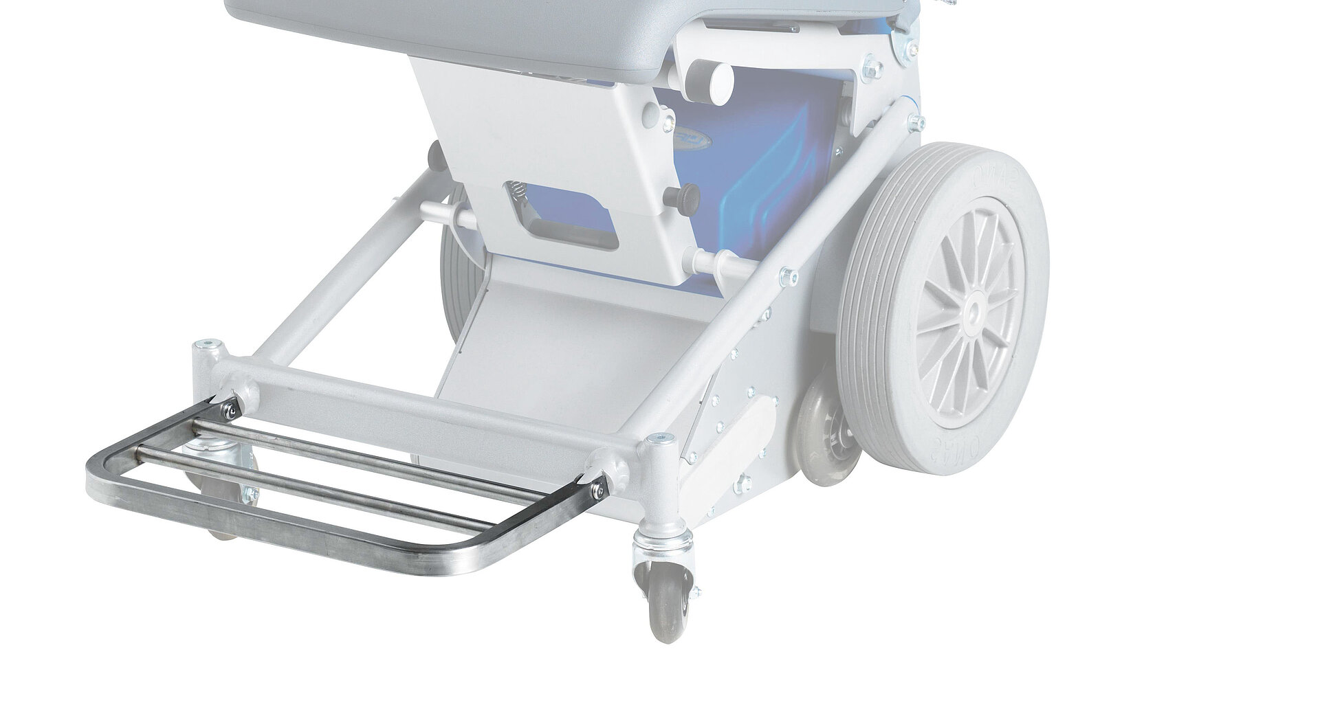 For self-propelled wheelchairs and transport chairs: simply roll onto the platform and secure in place with the retention clamp. Apply the wheelchair brakes, and you are ready to go! Folds away compactly for quick and easy stowage. Also ideal for professional personnel transport.